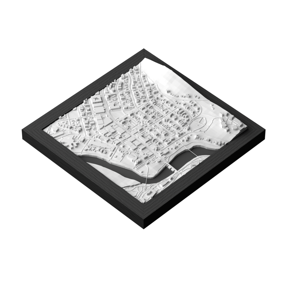 Our 3D printed creation is a scaled-down reflection of Banff's actual geography, offering a realistic and proportionate depiction of its quaint streets and surrounding peaks. It invites you to appreciate the layout and nuances of the town, transporting you back to the tranquil streets and awe-inspiring landscapes of this alpine paradise.
